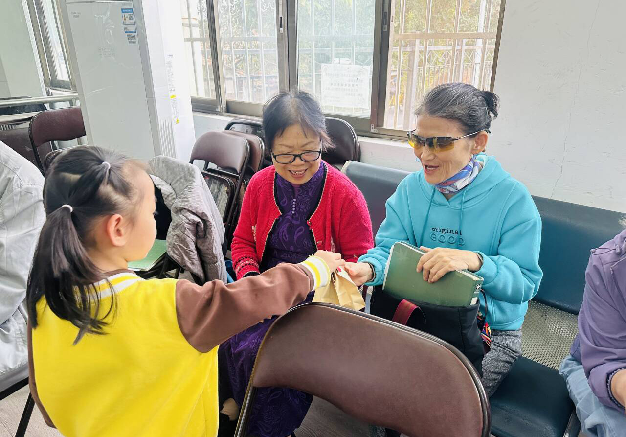 孩子们在老师带领下抵达离退处,纷纷双手递上茶包,脆声送上节日祝福。老人们接过茶包,笑容欣慰,轻抚孩子夸赞“这茶包最珍贵”,现场暖意融融。随后,孩子们表演手势舞《百善孝为先》。音乐起,他们站姿整齐、手势标准,稚嫩歌声里满是敬意。老人们认真观看,有的用手机记录,现场掌声不断。