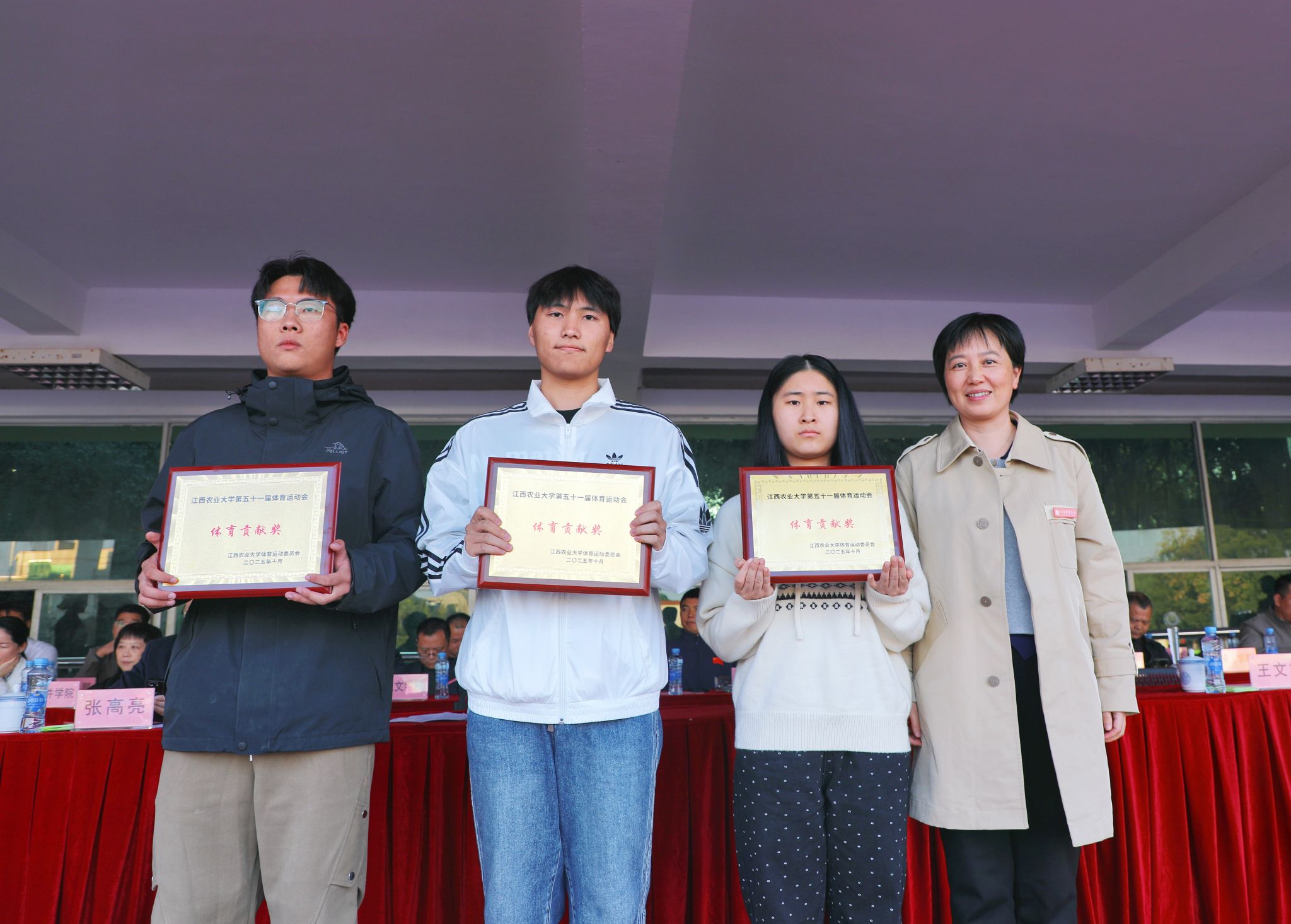 第51届田径运动会总裁判长符业清老师宣布运动会比赛成绩,工学院、生工院、农学院分获学生男女团体总分前三名;工学院、农学院、软件院荣获学生男子团体总分前三名;生工院、动科院、经管院获得学生女子团体总分前三名;外语院、食品院、计信院、人文院、国土院、职师院获得大学生体育道德风尚奖;经管院、工学院、国土院获体育贡献奖;工学院、经管院、国土院获体育竞赛团体总分前三名;经管院、人文院、计信院、职师院、工学院、食品院、动科院、农学院获学生体质测试先进单位。